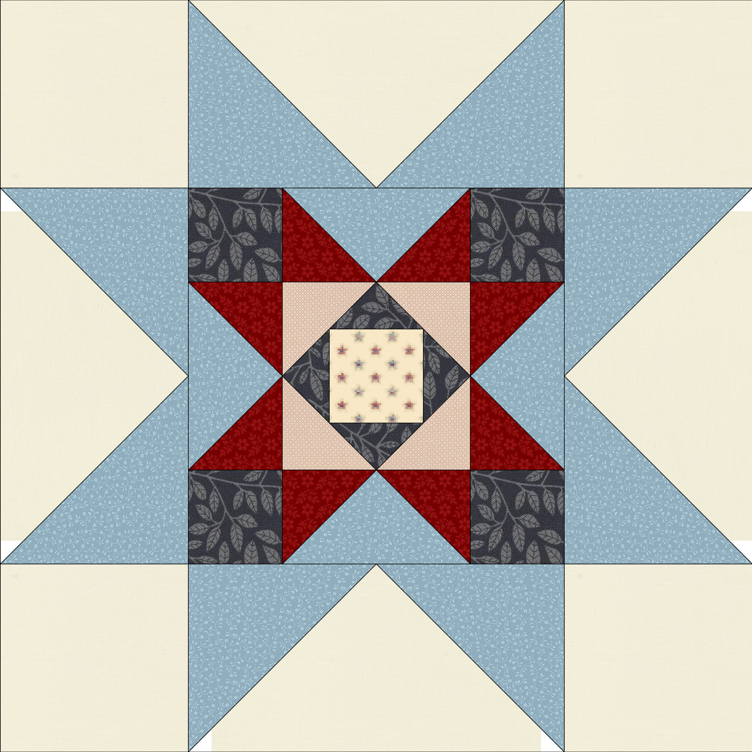 Each month, we will post pictures of the finished block online in each of our two featured colorways offered. At the end of the program, you’ll also have the option to purchase a finishing kit for the quilt, which will be approximately throw/twin-sized. The pictures and descriptions of the finished quilts will be shown a couple of months before we finish for your consideration, and you may sign up for the finishing kit at that time.
