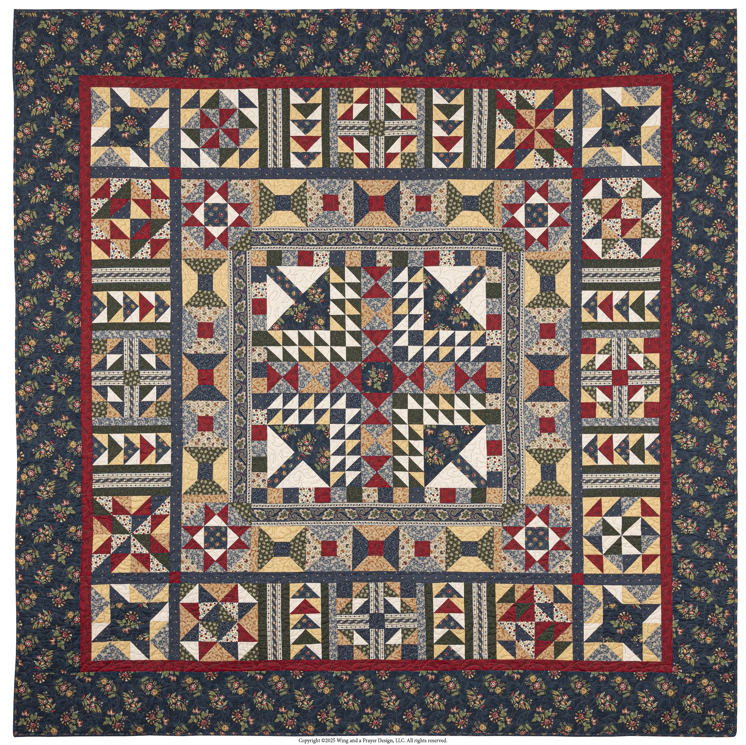 This 12-month program utilizes basic quilting techniques, written in classic Wing and a Prayer Design style. The quilt finishes at 92” square. The program begins April 2026. Initial sign up has a non-refundable deposit of $50, which includes your first month’s kit and the pattern. Each month after that will be $35. Mailing options are available.